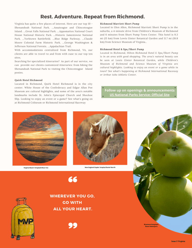 Destination #5 brings us to the U.S. National Parks in Virginia by way of Richmond
