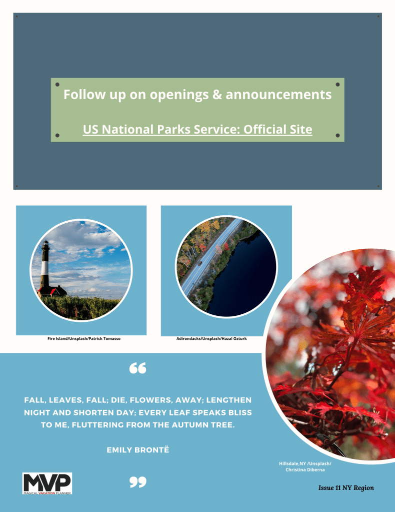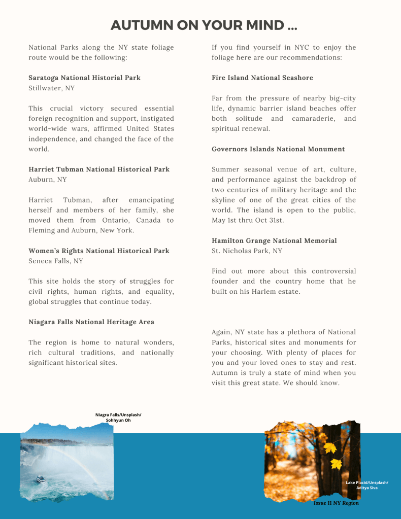 For our Week 11 journey, we are staying within NYS and visiting multiple National Parks/Sites while also enjoying the best of the fall foliage!!!