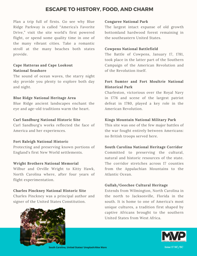 Explore the seashore, hike the hills and immerse yourself in this country’s history as you explore North Carolina and South Carolina with us this week!