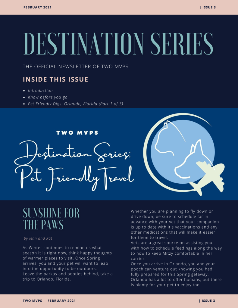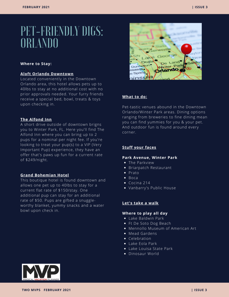 This week’s issue starts our 3 week journey through the Orlando area and all the pet friendly fun to be found!!