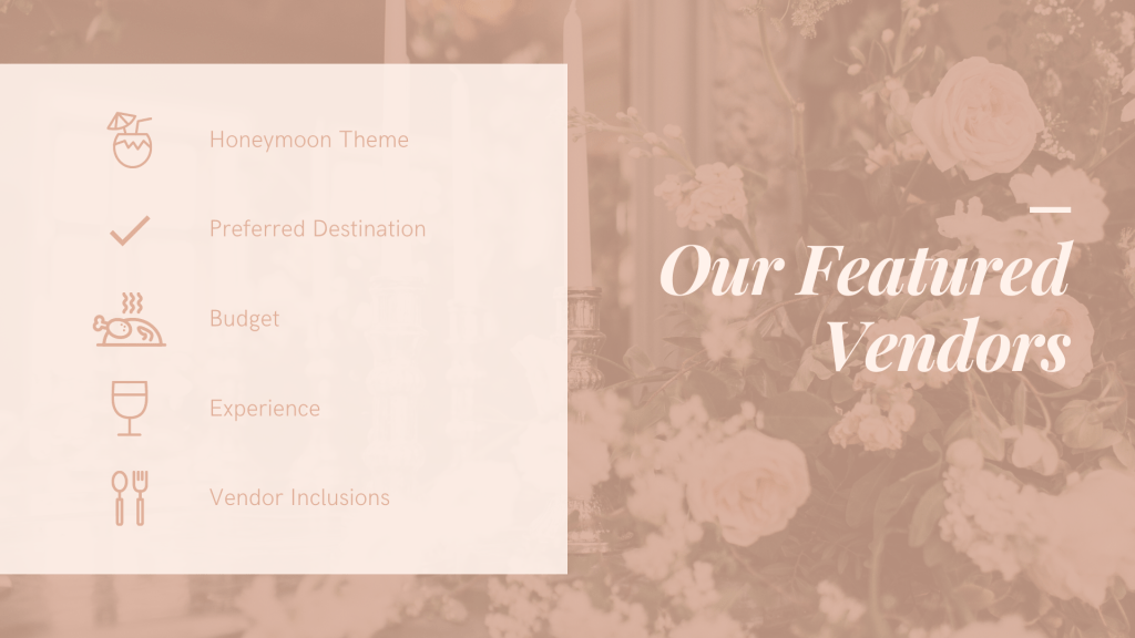 Join us as we introduce you to the benefits of working with us on your honeymoon planning.